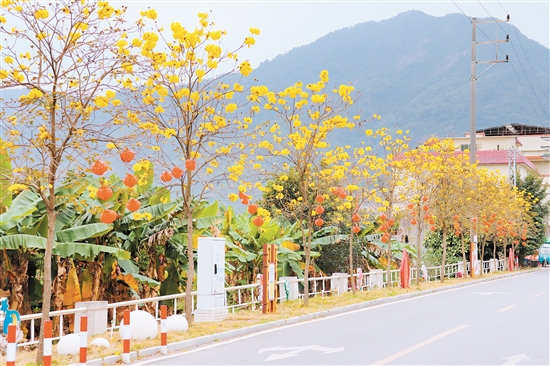 走在杜阮鎮(zhèn)上巷村的村道上,新種植的黃花風(fēng)鈴木開(kāi)得正盛,形成了一條數(shù)百米的“黃金帶”;在棠下鎮(zhèn)五洞村,村道上新種植的簕杜鵑齊齊盛放、姹紫嫣紅;在潮連街道盧邊社區(qū),道路兩旁的樹(shù)木郁郁蔥蔥、枝繁葉茂,一派生機(jī)勃勃的景象……