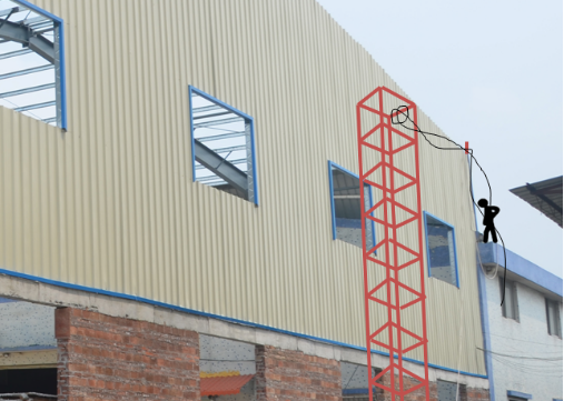 2021年5月15日,袁某英將新建廠棚的事項(xiàng)與全某某達(dá)成協(xié)議,并簽訂了《袁某英建簡(jiǎn)易廠房雙方協(xié)議》,5月17日又簽訂了一份《補(bǔ)充合同》。期間因?yàn)槿衬硨?duì)鋼結(jié)構(gòu)修建不熟悉,又將鋼構(gòu)搭建工序交由秦某統(tǒng)籌施工建造,而秦某本人亦無(wú)施工資質(zhì),也沒有跟全某某就該工序施工簽訂書面協(xié)議。秦某在接到該工序事項(xiàng)后,簡(jiǎn)易地草畫了鋼結(jié)構(gòu)的施工圖紙,并臨時(shí)組合羅某某等人進(jìn)行現(xiàn)場(chǎng)施工。事發(fā)前,立柱、天面、工架、桁架基本成型,事發(fā)當(dāng)天正進(jìn)行廠棚側(cè)面的封邊固定(如圖二)。