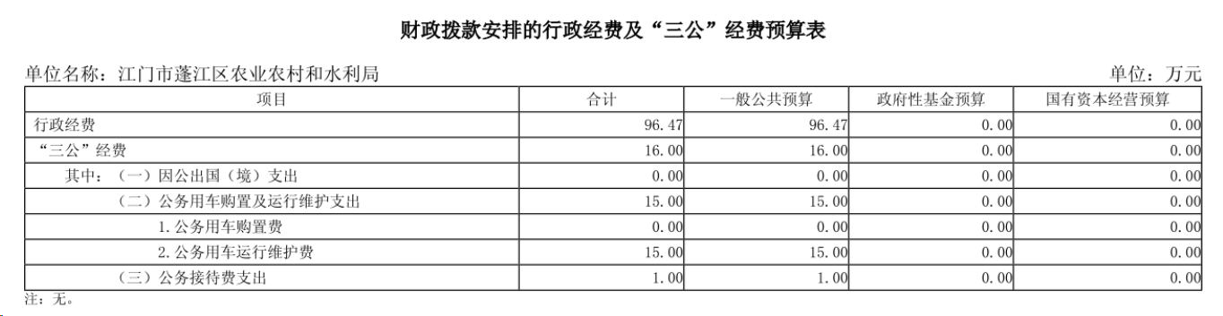2024年江門市蓬江區(qū)農(nóng)業(yè)農(nóng)村和水利局部門預算“三公”經(jīng)費公開