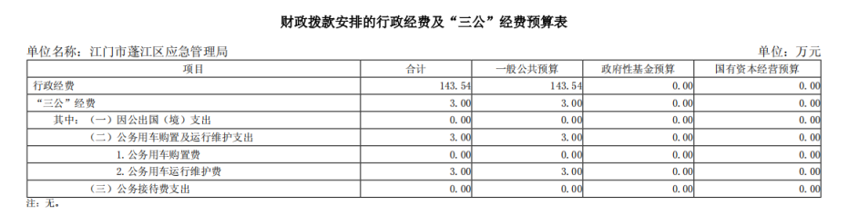 2025年江門市蓬江區(qū)應(yīng)急管理局“三公”經(jīng)費預(yù)算