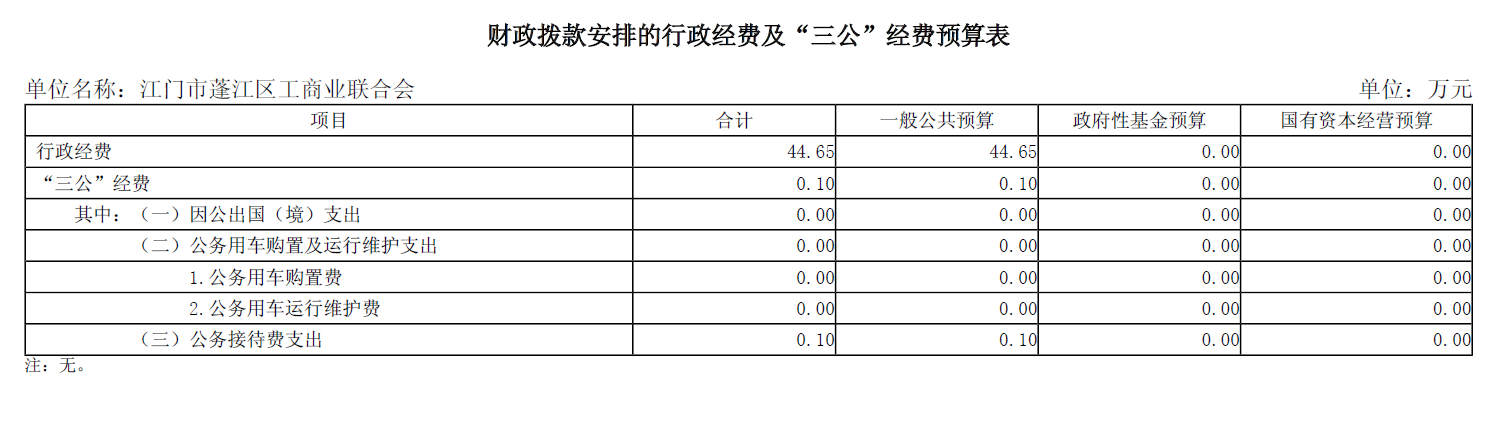 2025年江門市蓬江區(qū)工商業(yè)聯(lián)合會(huì)“三公”經(jīng)費(fèi)預(yù)算公開