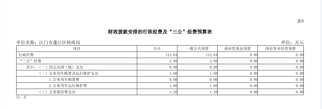 2025年江門市蓬江區(qū)財(cái)政局三公經(jīng)費(fèi)預(yù)算公開