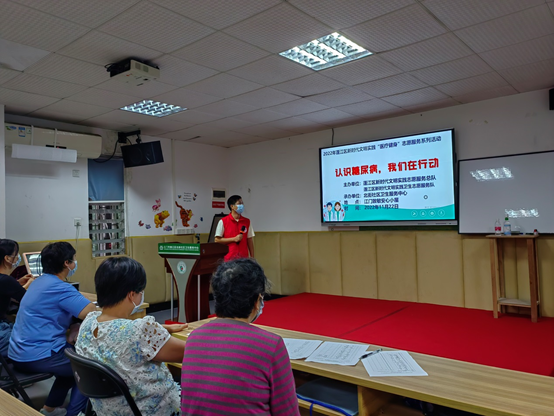 11月22日下午,蓬江區(qū)新時(shí)代文明實(shí)踐志愿服務(wù)總隊(duì)、蓬江區(qū)新時(shí)代文明實(shí)踐衛(wèi)生健康志愿服務(wù)隊(duì)聯(lián)合北街社區(qū)衛(wèi)生服務(wù)中心圍繞 “認(rèn)識(shí)糖尿病 我們?cè)谛袆?dòng)”為主題,在江門(mén)敦敏安心小屋舉辦了一場(chǎng)關(guān)愛(ài)糖尿病病友的講座。