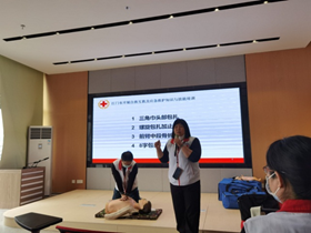 本次培訓(xùn)班分為理論和實操兩部分。紅十字救護師資給學(xué)員們講述了創(chuàng)傷救護的理論知識,詳細(xì)學(xué)習(xí)了心肺復(fù)蘇、AED的使用、外傷四項包扎處理等。經(jīng)過緊張有序的練習(xí)和考試,共有46名學(xué)員參加考試并成績合格,取得了紅十字初級救護員證書。