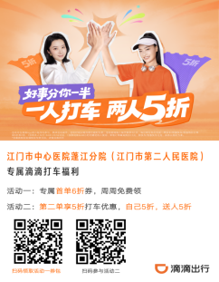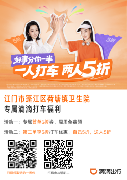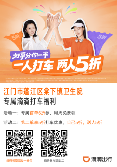 為方便患者就醫(yī),在蓬江區(qū)衛(wèi)生健康局的積極統(tǒng)籌下,轄區(qū)6家醫(yī)療機構聯(lián)合滴滴出行,推出“健康出行”惠民專屬福利,告別烈日暴曬,就醫(yī)路上更輕松!