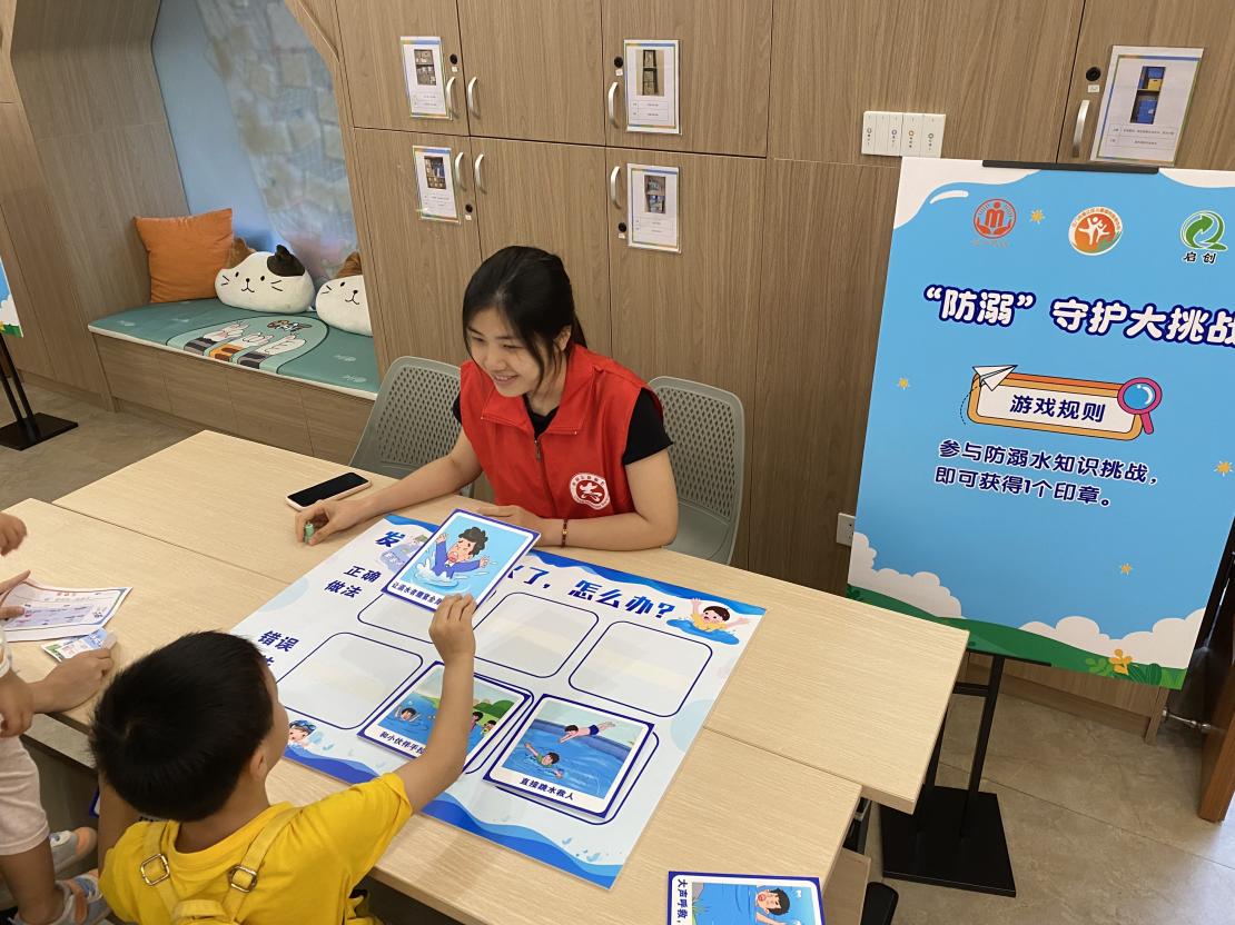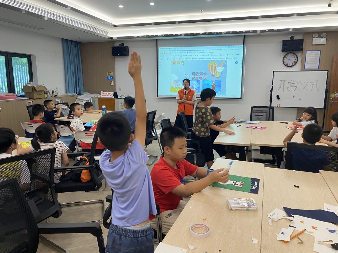在社工的組織與帶領(lǐng)下,志愿者團隊各自設(shè)計出4個安全主題的夏令營課程。其中,在防溺水主題中,志愿者通過知識短講、情景模擬題以及快問快答等趣味方式,向兒童講解如何防溺水、如何自救,引導(dǎo)兒童做到防溺“六不要”,讓兒童在輕松愉快的氛圍中學習知識。