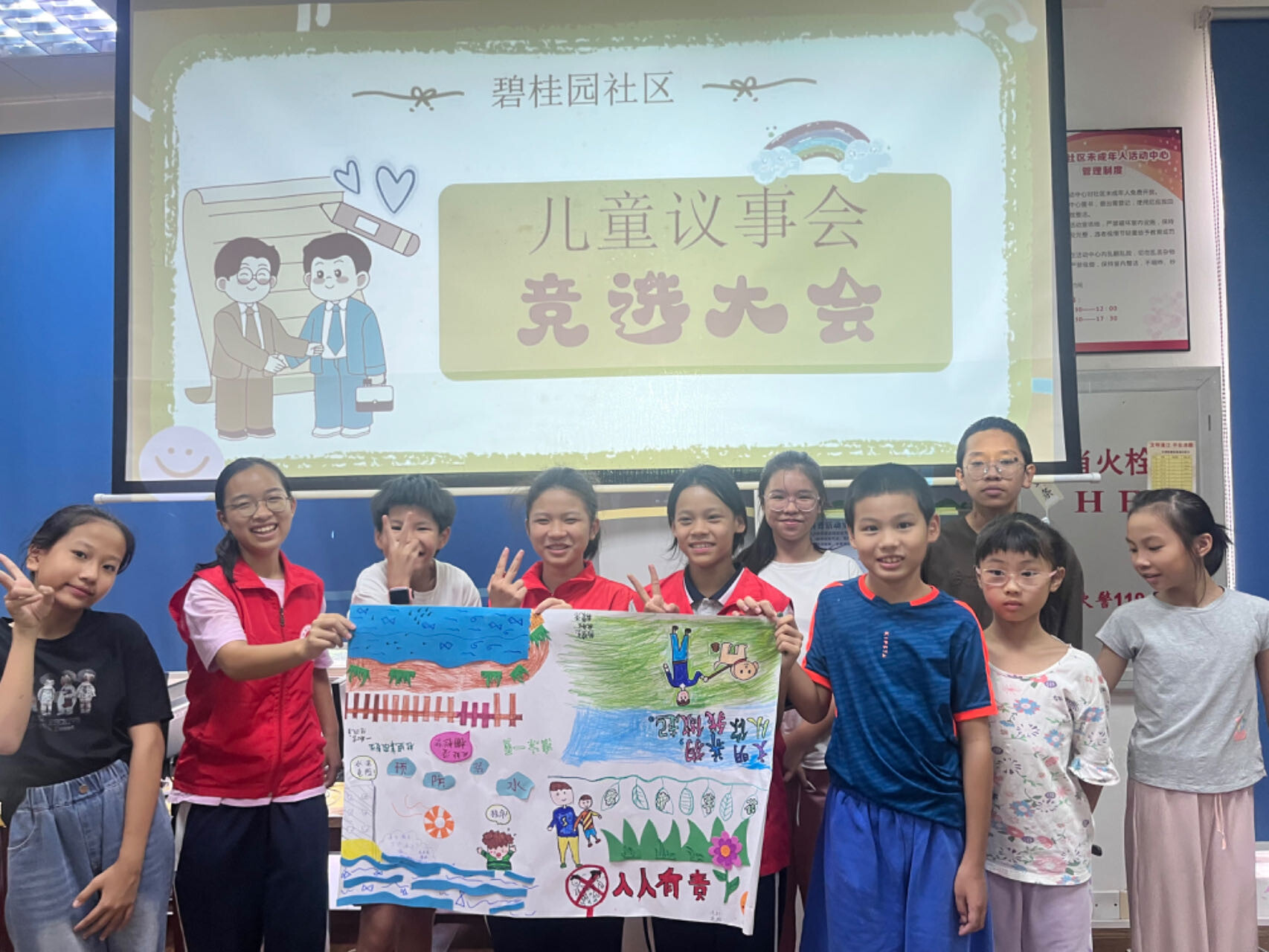 為聚焦兒童發(fā)展,將“1米高度看世界”視角引入社區(qū),引導(dǎo)兒童以“社區(qū)主人翁”的身份,共同參與討論社區(qū)事務(wù)。在區(qū)社會(huì)組織管理局指導(dǎo)下,8月中旬,蓬江區(qū)德信行社會(huì)工作服務(wù)中心聯(lián)合碧桂園社區(qū)開展“童言善治共童前行”碧桂園兒童代表參與碧桂園社區(qū)治理活動(dòng)。