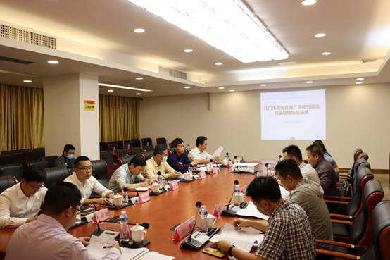 為保持新冠“乙類乙管”常態(tài)化防控指揮體系有效運(yùn)行,全面提升新冠感染疫情快速處置能力,4月27日下午,蓬江區(qū)舉辦新冠病毒感染疫情防控桌面演練。區(qū)委常委、副區(qū)長謝樹濃、副區(qū)長利錦波和市疾控中心傳防所所長黃國參加本次演練。