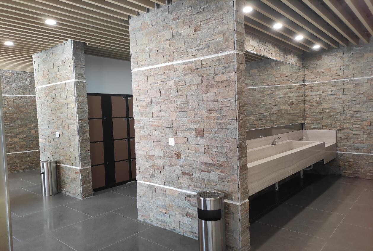 本次升級(jí)改造的公廁位于群星公園停車場(chǎng),毗鄰南門(mén)入口。改造前,日常如廁人流量較大。原有建筑陳舊僅有廁位3個(gè),墻體殘舊滲水、門(mén)窗破損、設(shè)施陳舊、缺少無(wú)障礙設(shè)施,日常使用中空氣十分渾濁難聞。改造后,在景觀上,建筑外墻采用符合生態(tài)自然風(fēng)格文化石,在外觀上體現(xiàn)美觀大方;在功能上,設(shè)有男女衛(wèi)生間廁格20個(gè),多個(gè)廁格方便更多的市民使用。