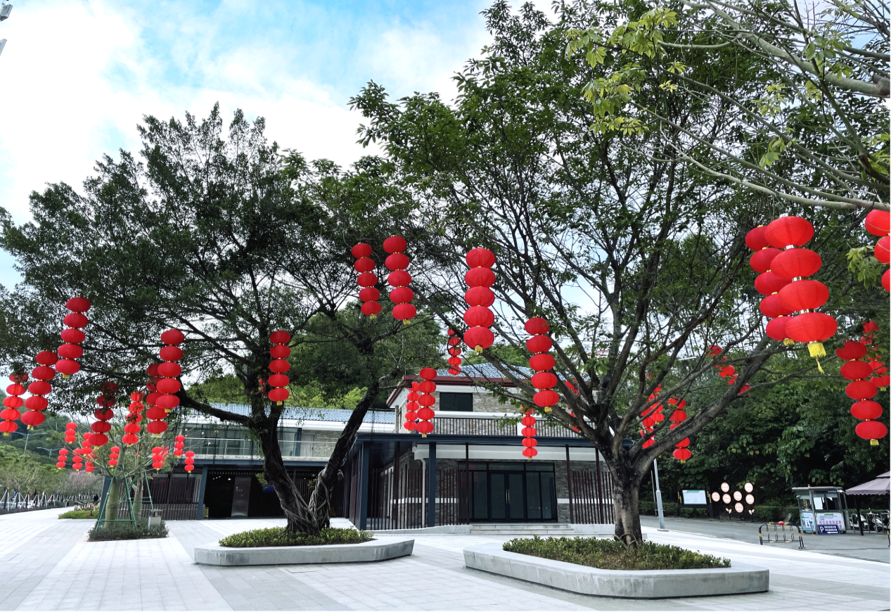 象征著團(tuán)圓與幸福的紅燈籠點(diǎn)綴在樹上,成了一道靚麗的風(fēng)景線