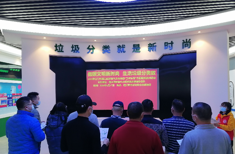 “實(shí)行垃圾分類(lèi),關(guān)系廣大人民群眾生活環(huán)境,關(guān)系節(jié)約使用資源,也是社會(huì)文明水平的一個(gè)重要體現(xiàn)?!迸罱瓍^(qū)垃圾分類(lèi)氛圍越來(lái)越濃厚,上到白發(fā)蒼蒼的老人,下到踉蹌學(xué)步的小孩都在討論和參與生活垃圾分類(lèi)。1月17日,蓬江區(qū)城市管理和綜合執(zhí)法局聯(lián)合區(qū)新時(shí)代文明實(shí)踐志愿服務(wù)總隊(duì),組織10名市民群眾先后參觀蓬江區(qū)生活垃圾分類(lèi)宣教館和可回收物手工藝品展館。