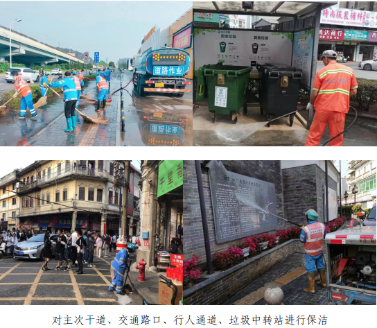 日均出動(dòng)環(huán)衛(wèi)工人2720人次、環(huán)衛(wèi)車輛477車次,累計(jì)清理衛(wèi)生死角721處,清運(yùn)垃圾5897噸,清理“牛皮癬”3645處,清洗城市家具及垃圾容器等公共設(shè)施約1.2萬(wàn)處(個(gè))。