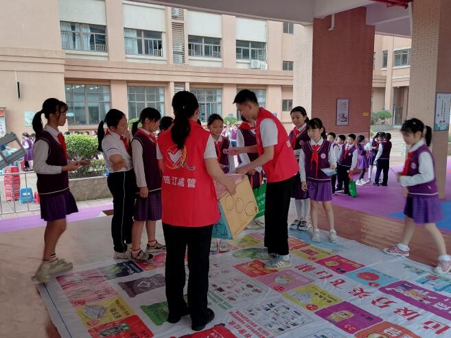 講座結(jié)束后,工作人員組織同學(xué)們到戶外游戲區(qū)參加活動(dòng),“垃圾分一分”“分類大轉(zhuǎn)盤”“垃圾分類飛行棋”等豐富多彩的游戲,讓同學(xué)們沉浸其中。大家拿著印章收集卡,穿梭在各個(gè)游戲之間,一邊愉快玩耍一邊學(xué)習(xí)垃圾分類知識(shí),通關(guān)后還可以兌換心儀的禮品和領(lǐng)取《垃圾分類法律知識(shí)50問》,現(xiàn)場宣傳氛圍熱烈濃厚。