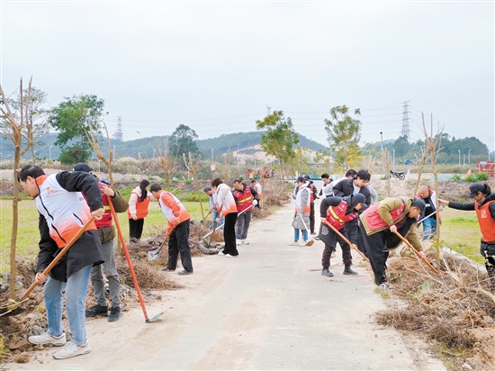 在潮連街道富岡社區(qū),來自市直部門、區(qū)直部門、社團組織的黨員干部和村民、志愿者一起熱火朝天地開展植樹活動,一同種下“桃李林”“國防林”“檔案林”“雄獅林”“幫扶林”“富岡林”“家庭林”等7片各具特色的主題林,為鄉(xiāng)村道路增添了綠色和生機。“此次活動種下約100棵黃花風鈴和桂花樹,樹苗主要由源林投資(廣東)有限公司董事長關杰初先生捐贈。”駐富岡社區(qū)第一書記齊旸表示。
