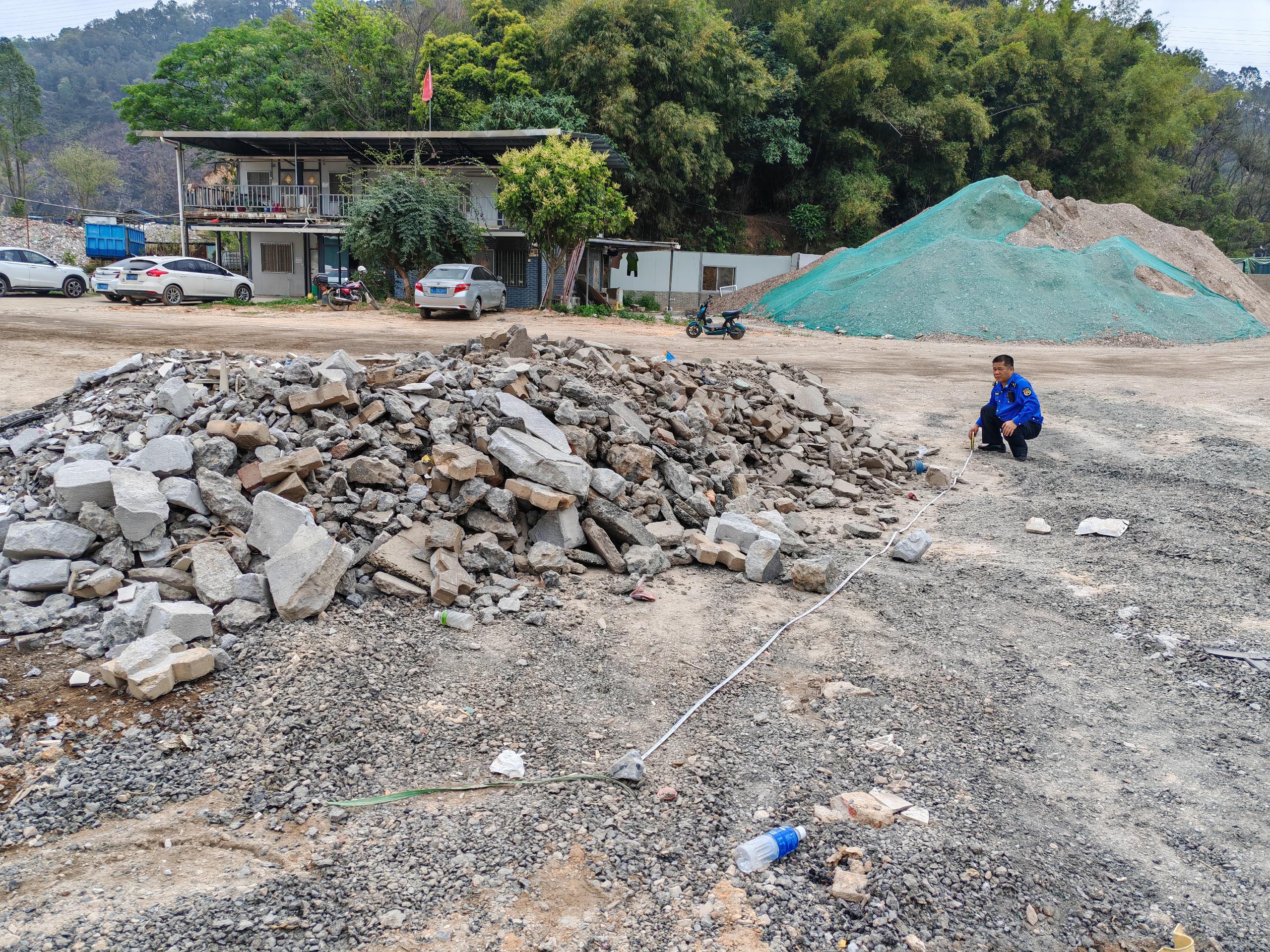 執(zhí)法人員在堆放現(xiàn)場(chǎng)進(jìn)行測(cè)量取證