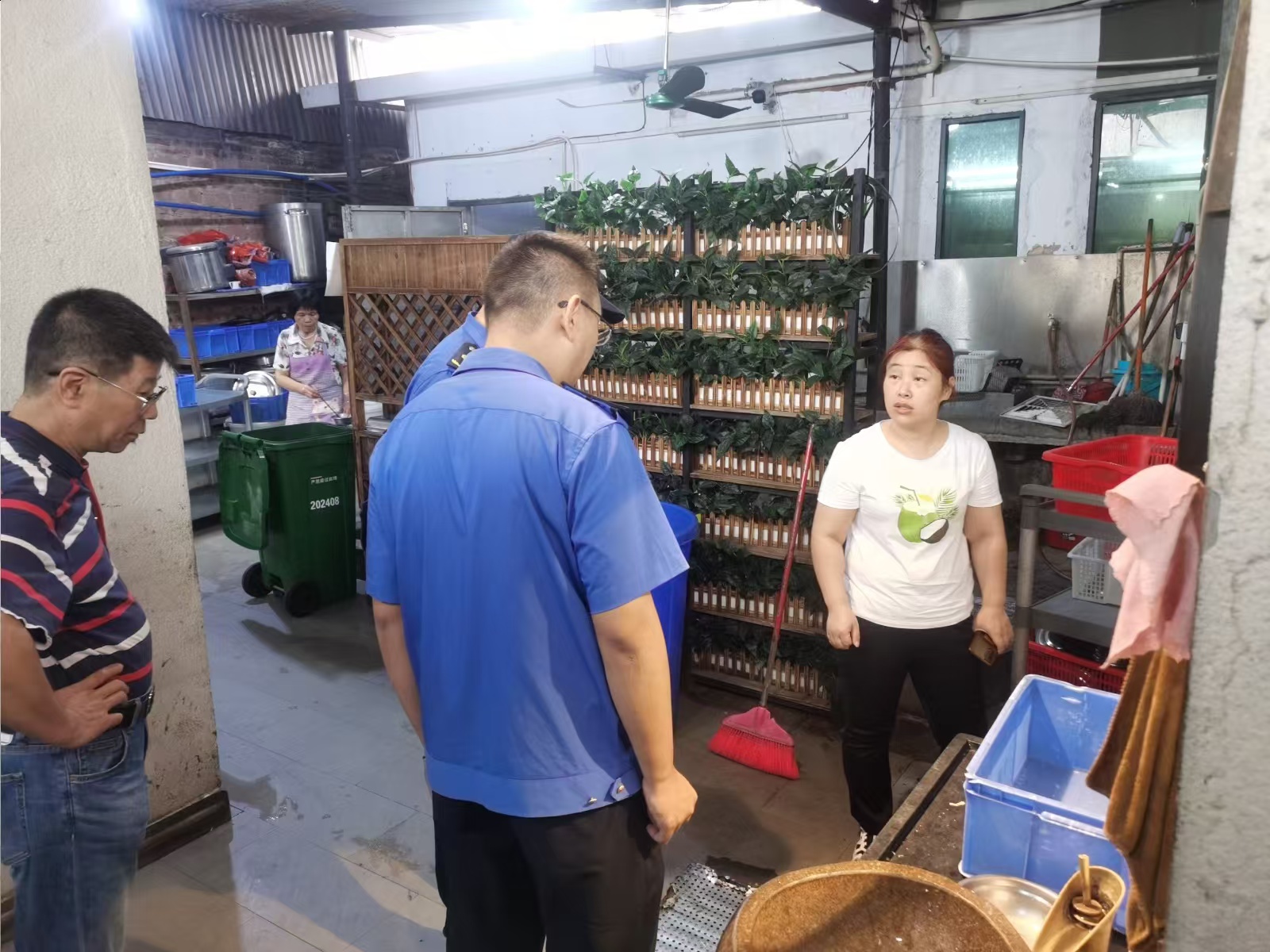 針對上述情況,蓬江區(qū)城市管理和綜合執(zhí)法局聯(lián)合區(qū)農(nóng)農(nóng)水局、環(huán)市街道和篁莊村委會前往現(xiàn)場檢查執(zhí)法,對中粵御香園、和記酒家、納福苑等幾家大型餐飲污水預(yù)處理池和定期清理廚余廢油情況進行排查。重點檢查餐飲店污水排放是否設(shè)置隔油池、是否定期清疏、是否存在混接錯接等情況。通過聯(lián)合檢查,發(fā)現(xiàn)部分餐飲存在隔油池未定期清理等情況,并針對存在的問題提出整改意見。