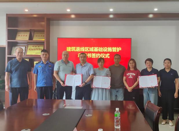 ▲物業(yè)公司代表簽訂《臨街建筑退線區(qū)域管理承諾書(shū)》
