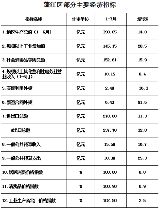 2021年1-7月蓬江區(qū)經(jīng)濟(jì)運(yùn)行簡況