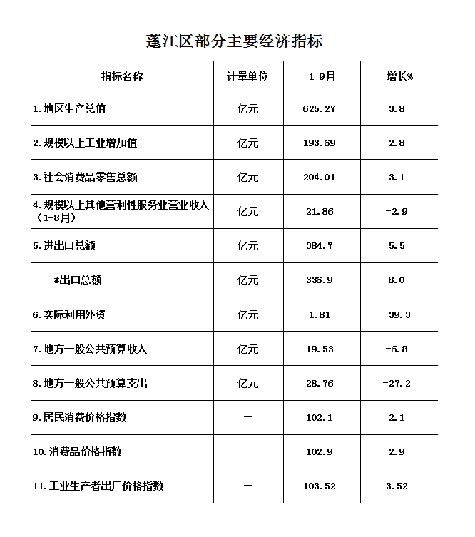 2022年1-9月蓬江區(qū)經(jīng)濟運行簡況