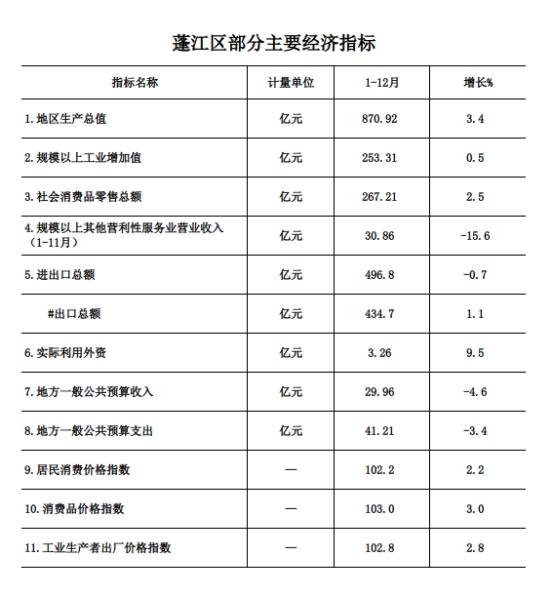2022年1-12月蓬江區(qū)經(jīng)濟運行簡況