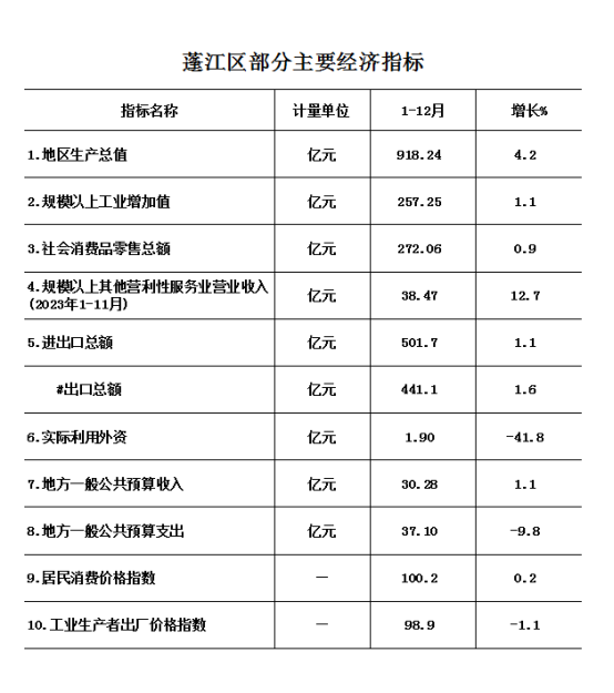 2023年1-12月蓬江區(qū)經(jīng)濟(jì)運(yùn)行簡況
