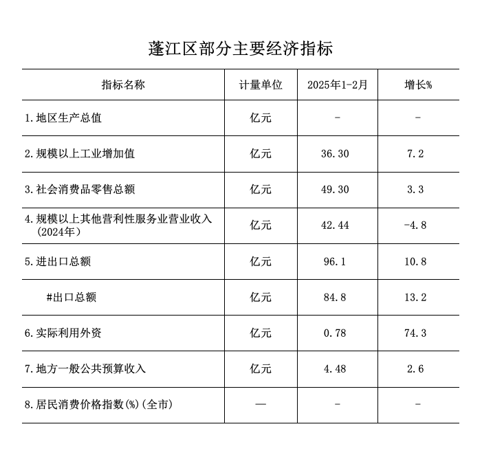 2025年1-2月蓬江區(qū)經(jīng)濟運行簡況