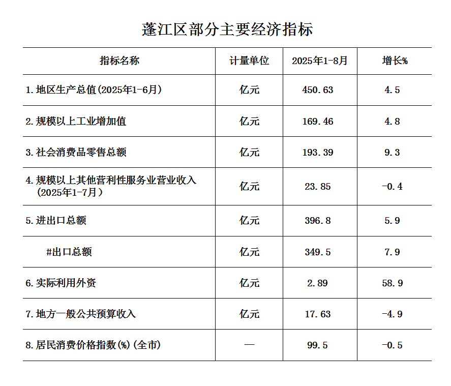 2025年1-8月蓬江區(qū)經(jīng)濟運行簡況