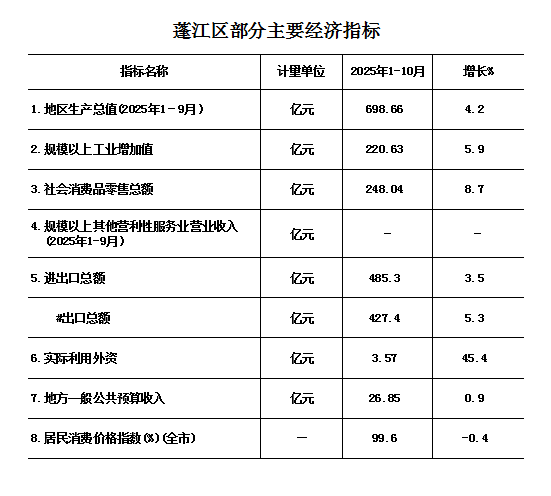 2025年1-10月蓬江區(qū)經(jīng)濟運行簡況
