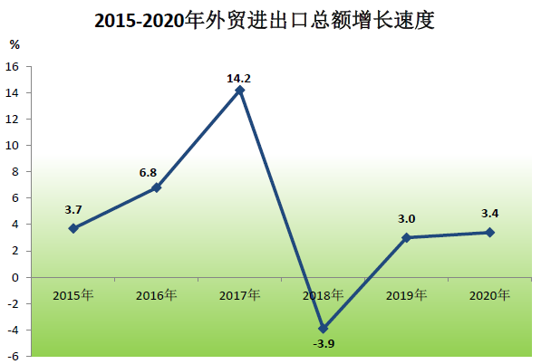 全年外貿(mào)進(jìn)出口總額396.9億元,比上年增長(zhǎng)3.4%。其中,進(jìn)口60.1億元,增長(zhǎng)4.2%;出口總額336.8億元,增長(zhǎng)3.3%。新簽合同外資2.28億美元,下降13.2%;實(shí)際利用外資0.91億美元,下降44%。