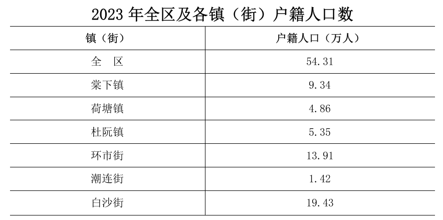 2023年末,全區(qū)常住人口87.04萬人,比上年末增加0.21萬人。年末公安戶籍總?cè)丝?/span>54.31萬人,其中:男性人口26.31萬人;女性人口28萬人。全年出生人口4375人,出生率8.05‰;死亡人口3609人,死亡率6.65‰;自然增長人口766人,自然增長率1.41‰。