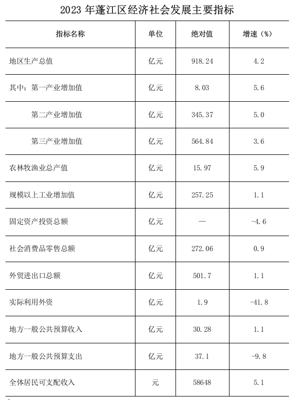 2023年江門市蓬江區(qū)國民經(jīng)濟(jì)和社會發(fā)展統(tǒng)計(jì)公報(bào)