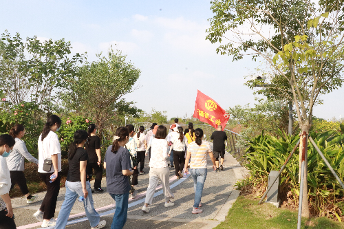 11月18日下午,參加健步走志愿服務(wù)活動的職工們在指示牌的指引下,從起點出發(fā),在潮頭中央公園的秋日微風(fēng)中,職工們一邊欣賞美景,一邊感受運動帶來的快樂。
