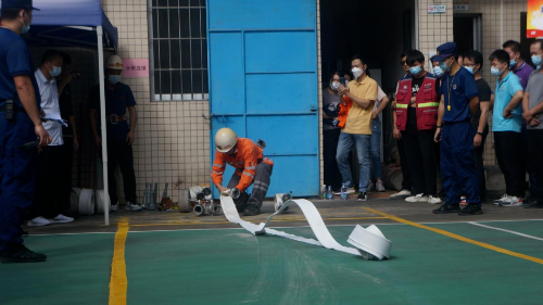 比武場(chǎng)上顯身手,以賽促學(xué)練精兵。此次消防安全勞動(dòng)技能競(jìng)賽從實(shí)際出發(fā),分成消防安全知識(shí)競(jìng)賽和消防技能實(shí)操競(jìng)賽兩個(gè)項(xiàng)目進(jìn)行。消防安全知識(shí)競(jìng)賽采取搶答方式進(jìn)行,各參賽隊(duì)員反應(yīng)迅速、踴躍搶答、從容作答,各隊(duì)比分交替上升,你追我趕、互不相讓。消防技能實(shí)操競(jìng)賽采取實(shí)操方式進(jìn)行,逃生奔跑、原地穿著消防服裝、搬運(yùn)重物折返跑、一人兩盤水帶連接4個(gè)項(xiàng)目,各參賽企業(yè)隊(duì)伍按照順序依次進(jìn)行實(shí)操演示,人員互相協(xié)作配合,將“精、快、穩(wěn)”的技能水平展現(xiàn)得淋漓盡致。