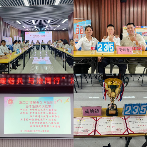 4月19日下午,由鎮(zhèn)武裝部副部長、退役軍人服務(wù)站副站長王偉國帶領(lǐng)荷塘鎮(zhèn)退役軍人服務(wù)站通過在全鎮(zhèn)14個(gè)村(居)服務(wù)站工作人員集中測評后選出的參賽隊(duì)員荷塘社區(qū)王磊、塔崗村李振標(biāo)、呂步村王銀麗組隊(duì)參加江門市蓬江區(qū)“情暖老兵、與法同行”法律法規(guī)知識競賽。蓬江區(qū)6個(gè)鎮(zhèn)(街)代表隊(duì)共18名參賽選手參加比賽,此次競賽分為必答、改錯(cuò)、搶答三種方式進(jìn)行,其主要內(nèi)容為:《退役軍人保障法》《軍人地位和權(quán)益保障法》《軍人撫恤優(yōu)待條例》《傷殘撫恤管理辦法》等政策法規(guī),比賽結(jié)束后,成績按照最后綜合總分高低進(jìn)行排列。