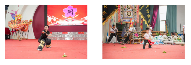 儀式結(jié)束后,大家共同走進(jìn)沙富小學(xué),進(jìn)行表演交流?;顒?dòng)率先進(jìn)行升國(guó)旗唱國(guó)歌,接著,活動(dòng)邀請(qǐng)了棠下鎮(zhèn)相關(guān)負(fù)責(zé)人、周家拳傳承人等進(jìn)行龍獅開光點(diǎn)睛儀式,也點(diǎn)燃了現(xiàn)場(chǎng)氣氛。