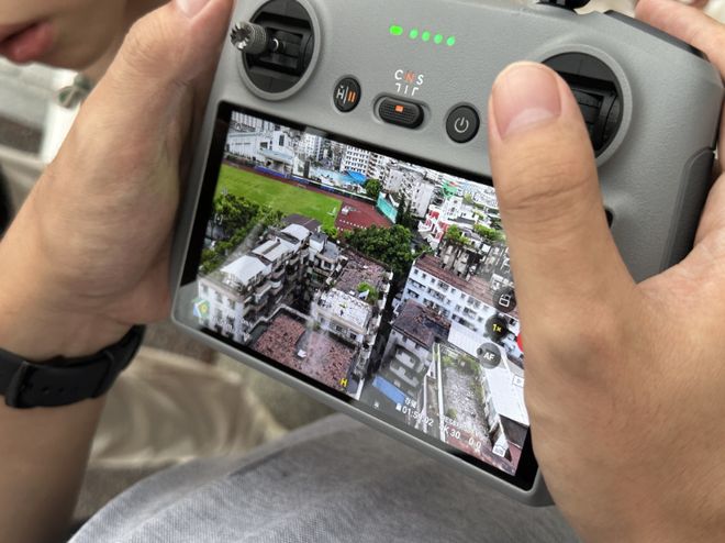 (工作人員在社區(qū)開(kāi)展無(wú)人機(jī)排查工作)