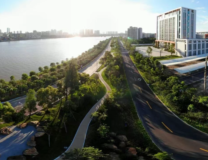 全長16.85公里的環(huán)島綠道,是騎行和慢跑的絕佳選擇。依江而成的堤圍路,江水環(huán)繞,清風(fēng)拂面,一邊運(yùn)動一邊欣賞西江美景,愜意非常。